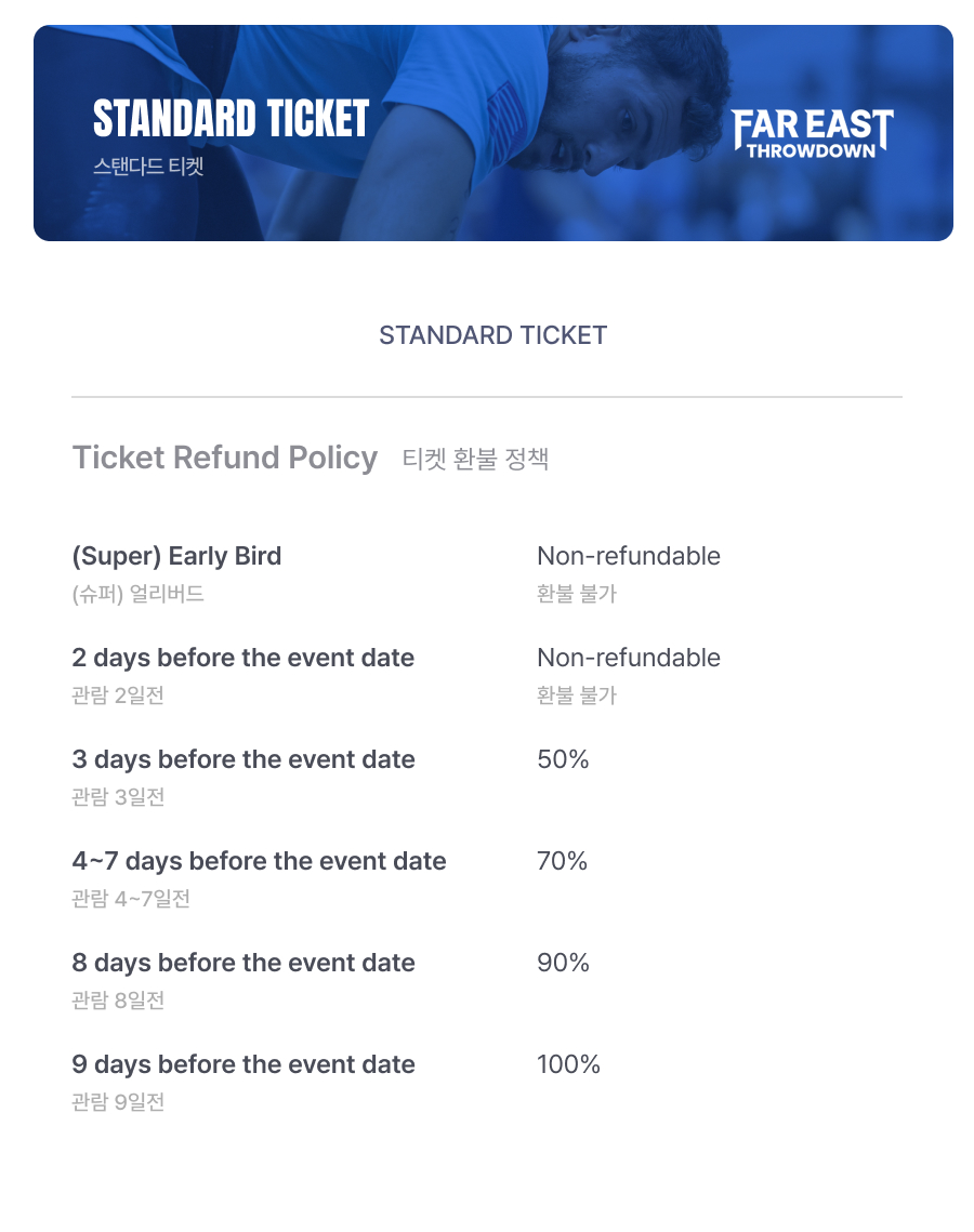 * 1–2 days before the event: Non-refundable – 5/28 00:00 ~ 5/29 23:59